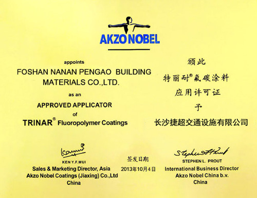 • 氟碳噴涂頒發證書